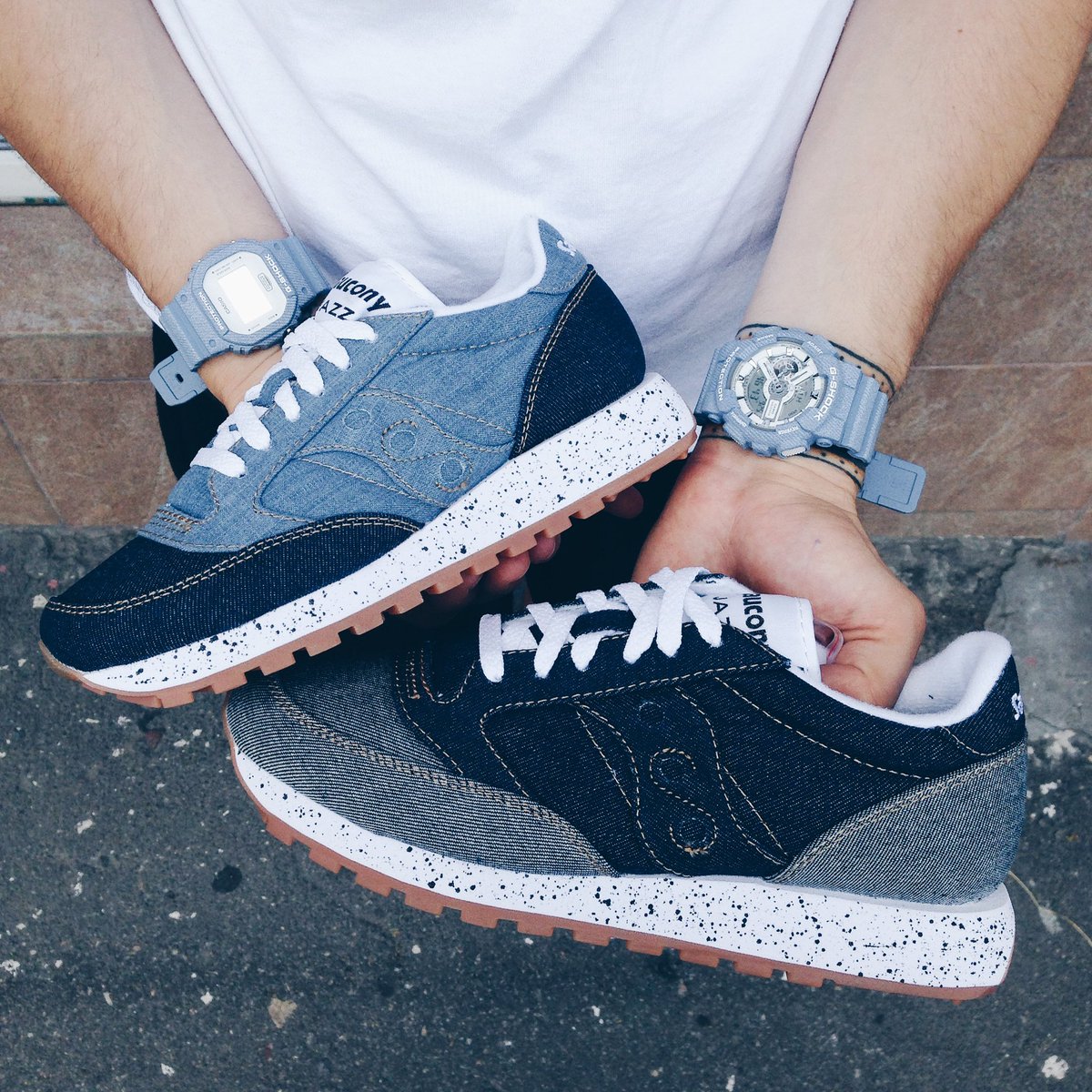 2. Jazz O Denim — немного переосмысленная модель вышеупомянутых кроссовок. Выполнена с использованием денима контрастных оттенков и характерной рыжей отстрочкой. Для тех кому нужно, чтобы и стильно, и красиво.